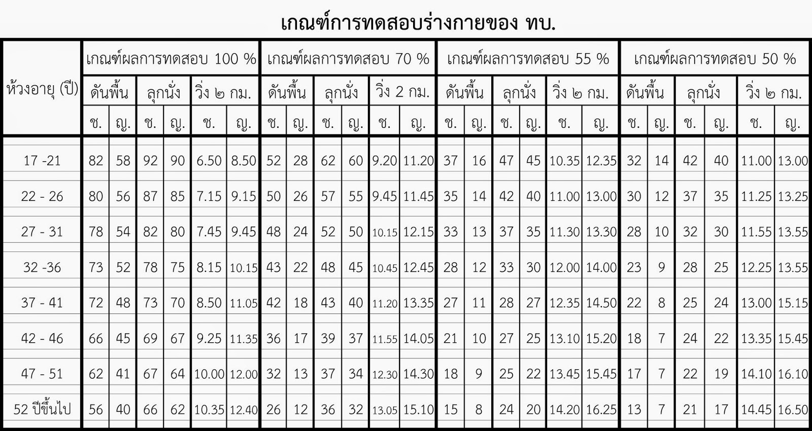 ขอบเขตประเภทกำลังพลที่ต้องทดสอบสมรรถภาพร่างกาย